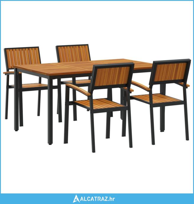 Vrtni set za objedovanje Set od 5 dijelova Crna Metal i drvo - NOVO