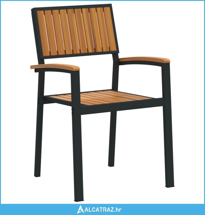 - Suvremeni Stil: S čistim linijama i rešetkastim dizajnom, ovaj set donosi modernu vibru vanjskom objedovanju. Crni okvir se lijepo ističe uz tople tonove drvene površine, dajući mu lijep izgled.