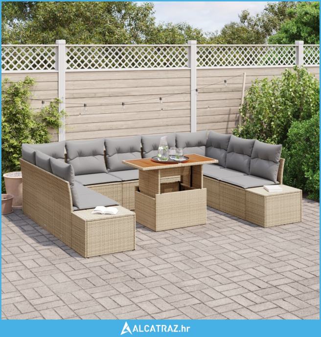 Vrtni set sofa Set od 10 komada Bež, siva Ratan, poliester - NOVO