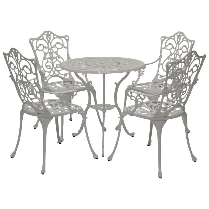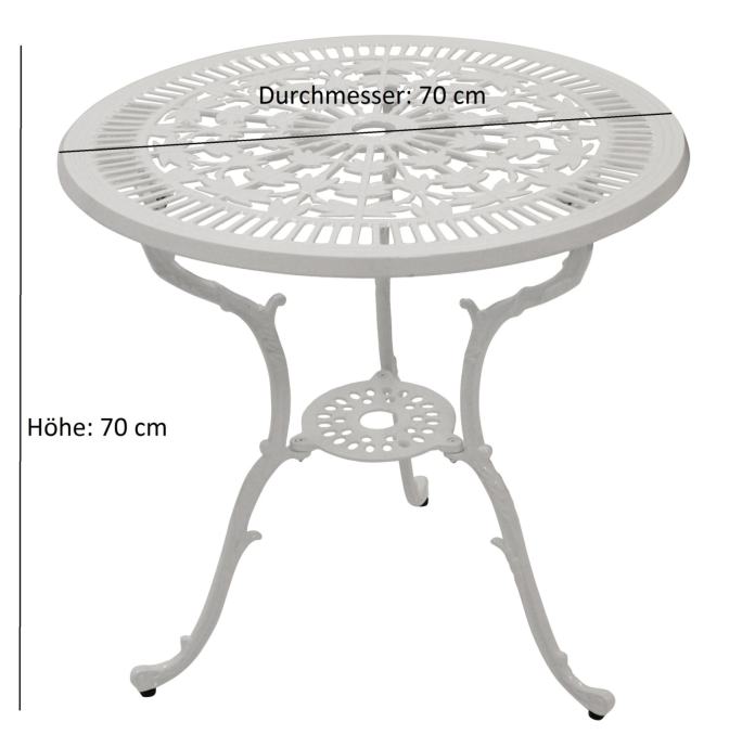 Ovaj ukrasni vrtni set iz serije LUGANO izrađen je od lijevanog aluminija otpornog na vremenske uvjete. Za razliku od namještaja od lijevanog željeza, potpuno je otporan na hrđu i posebno je prikladan za vanjsku upotrebu.