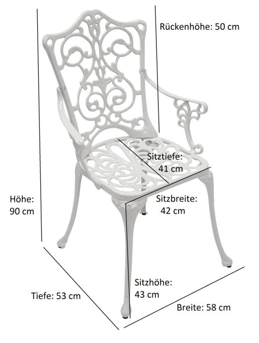 Svi dijelovi presvučeni su antičkom broncom. Svojim elegantnim izgledom garnitura je dragulj za svaki vrt - bilo kao udobno sjedalo ili samo kao atraktivan ukrasni element.