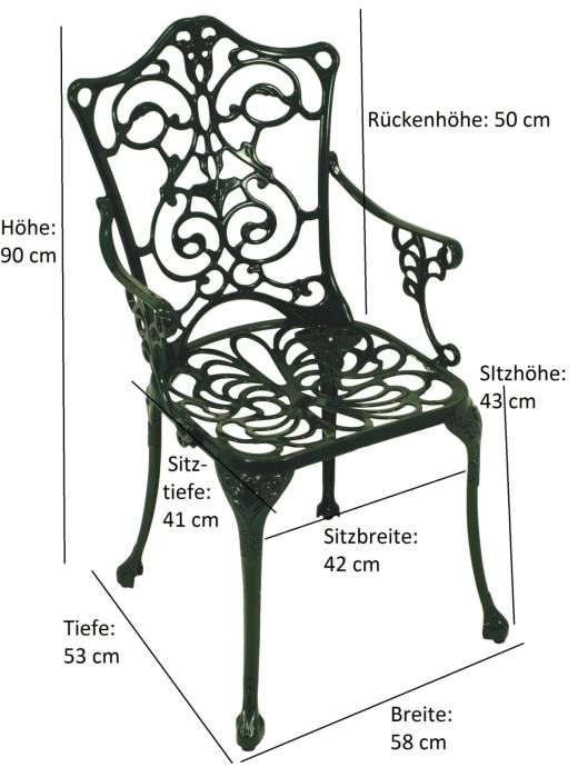 Svi dijelovi presvučeni su antičkom broncom. Svojim elegantnim izgledom garnitura je dragulj za svaki vrt - bilo kao udobno sjedalo ili samo kao atraktivan ukrasni element.