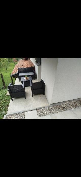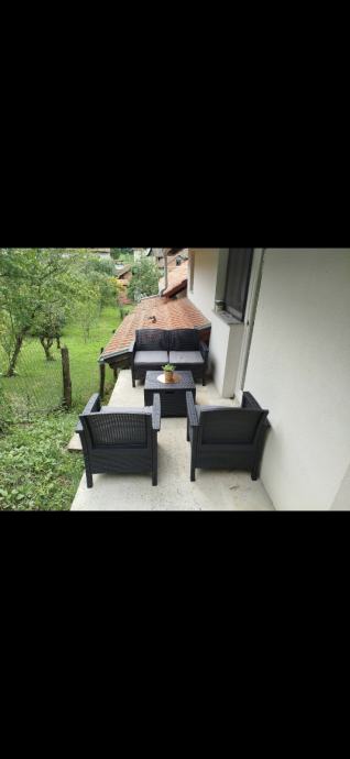 Sastoji se od dvije fotelje , klupe za dvoje i stolića koji služi ujedno i za pohranu jastuka koji idu sa setom.