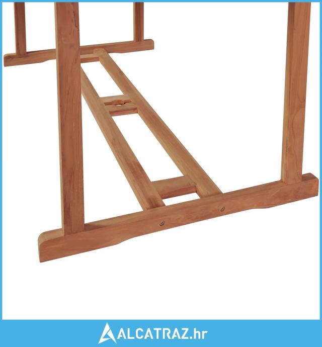 Izrađen od izuzetno izdržljive masivne tikovine, ovaj komad namještaja je obrađen, osušen i fino brušen kako bi imao gladak izgled. Tikovina je poznata po izuzetnoj čvrstoći i otpornosti na vremenske prilike što je čini daleko pogodnijom za vrtni namještaj od bilo koje druge vrste drveta. Tikovina je savršen izbor ako želite kupiti dugotrajni komad vrtnog namještaja.