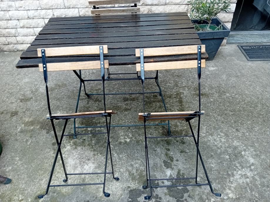 2 drvene stolice, sklopivo, metal, drvene letvice. 50 E