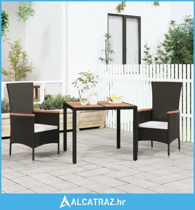 Vrtni stol s drvenom pločom crni od poliratana i drva bagrema - NOVO