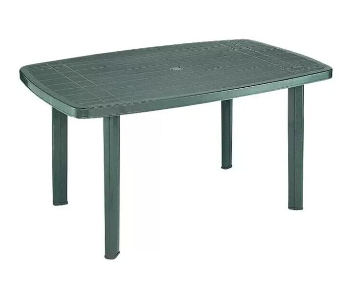 Zeleni stol od kvalitetne plastike sa rupom za suncobran. Original zapakiran. 140 x 90 x 72 cm