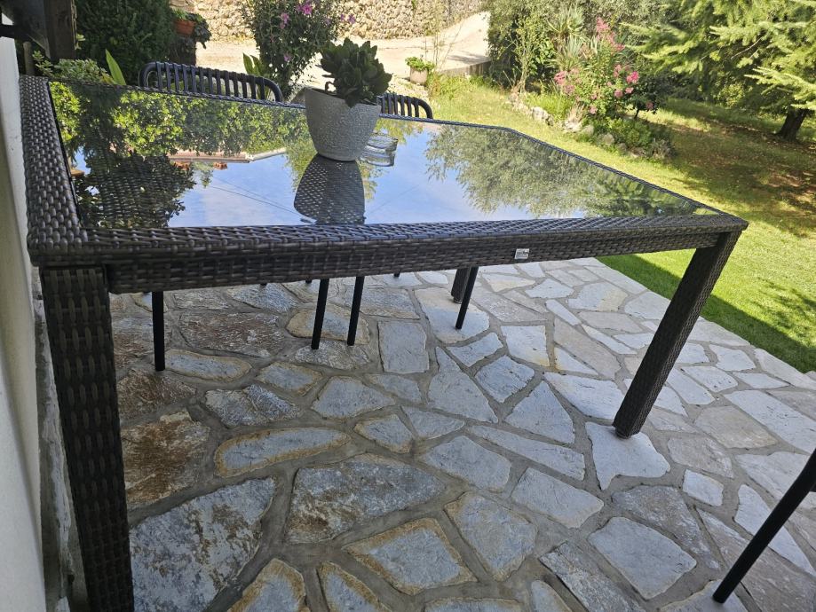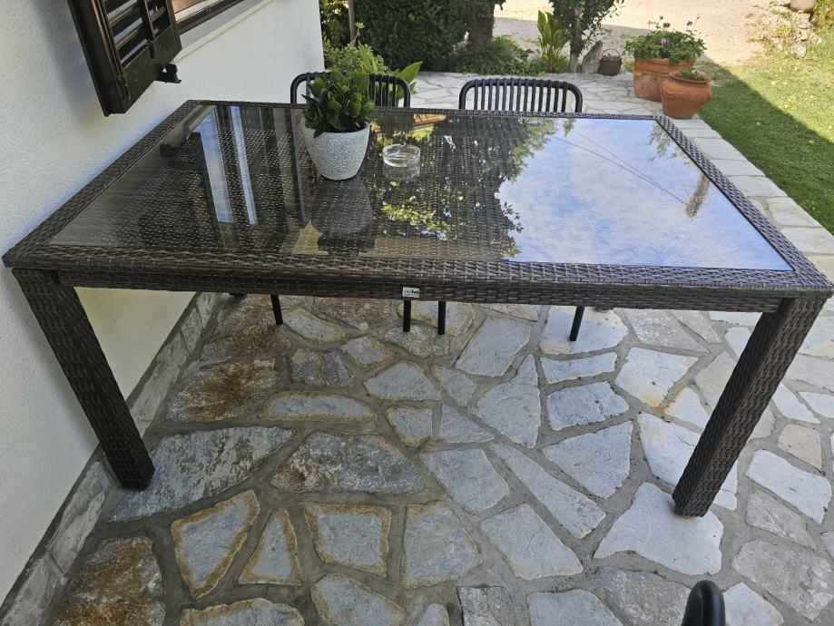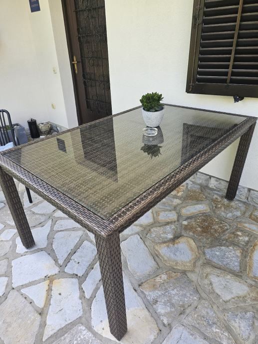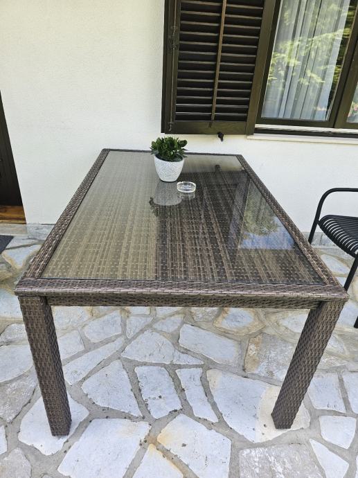 Prodajem vrtni stol 160x90cm od umjetnog ratana, stolice su gratis ako želite jer se na nekim mjestima pokidao umjetan ratan.