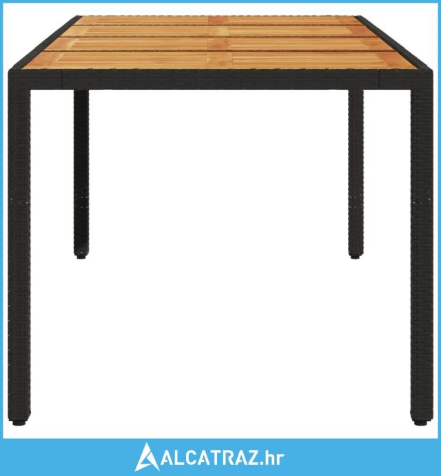 Vrtni stol s pločom od drva bagrema crni 190x90x75cm poliratana - NOVO