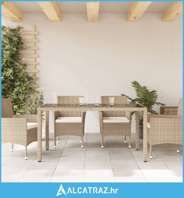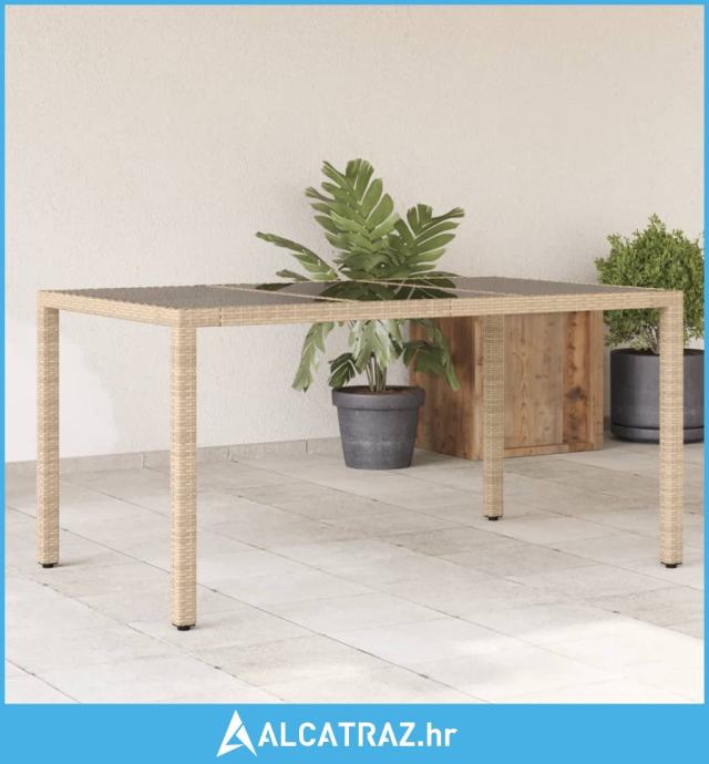 Vrtni stol sa staklenom pločom bež 150x90x75 cm poliratan - NOVO