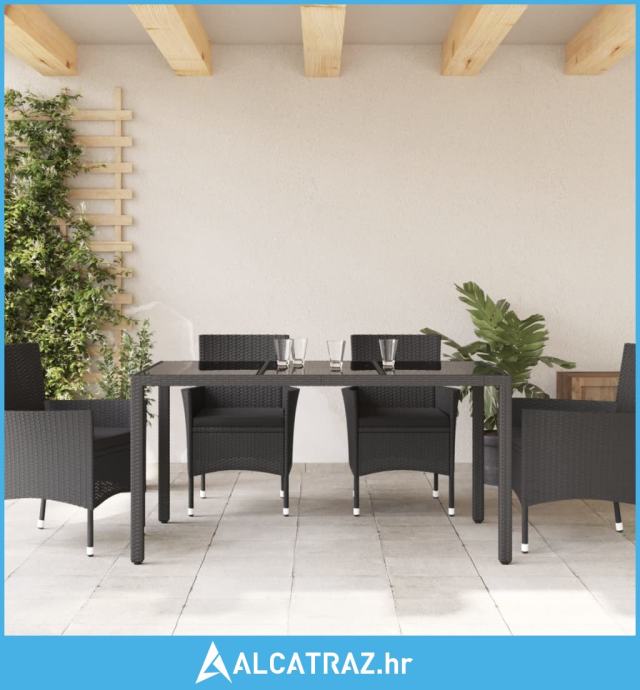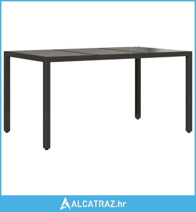 Vrtni stol sa staklenom pločom crni 150x90x75 cm od poliratana - NOVO