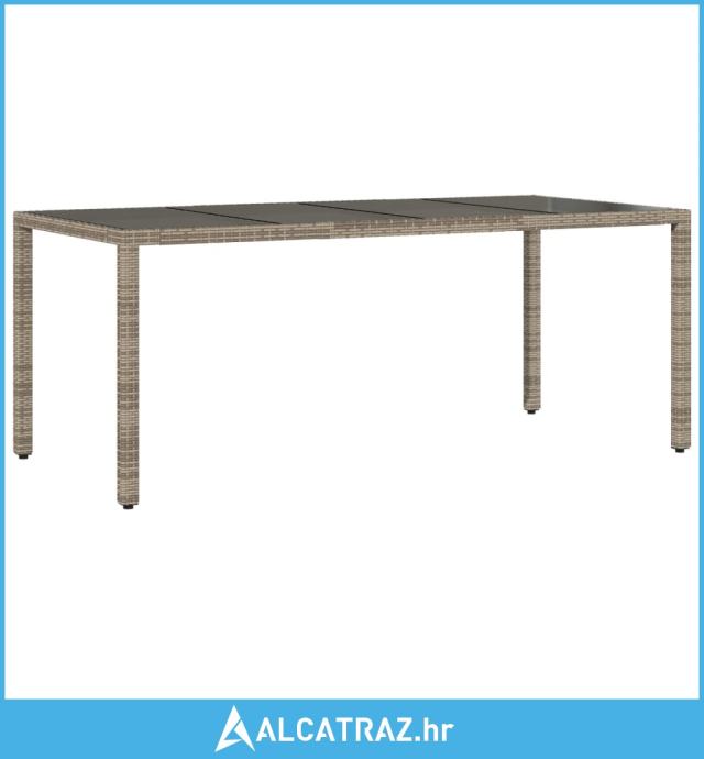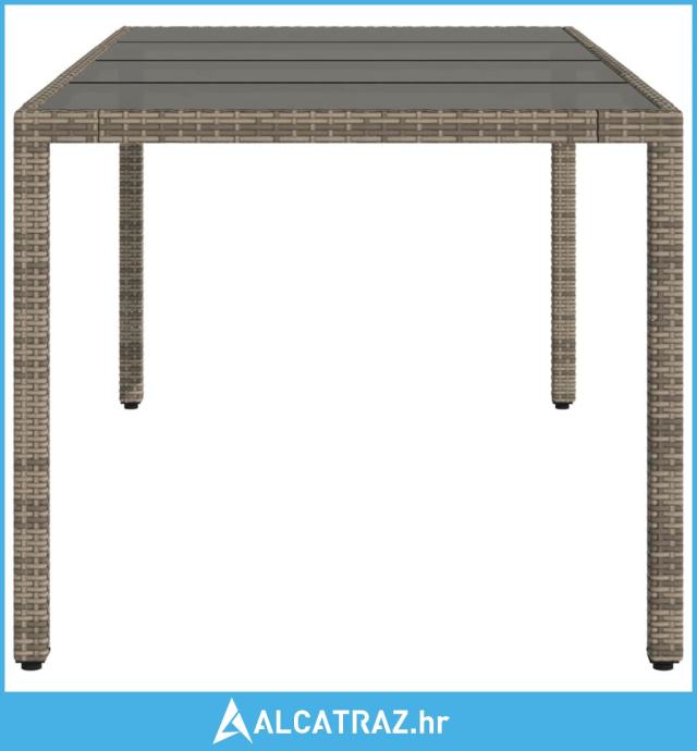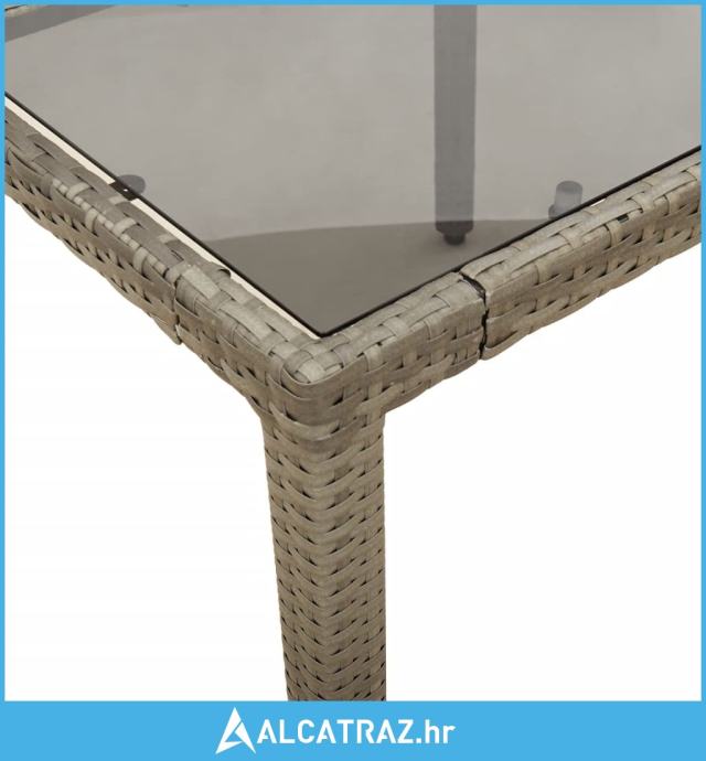 Vrtni stol sa staklenom pločom sivi 190x90x75 cm od poliratana - NOVO