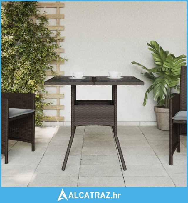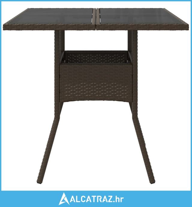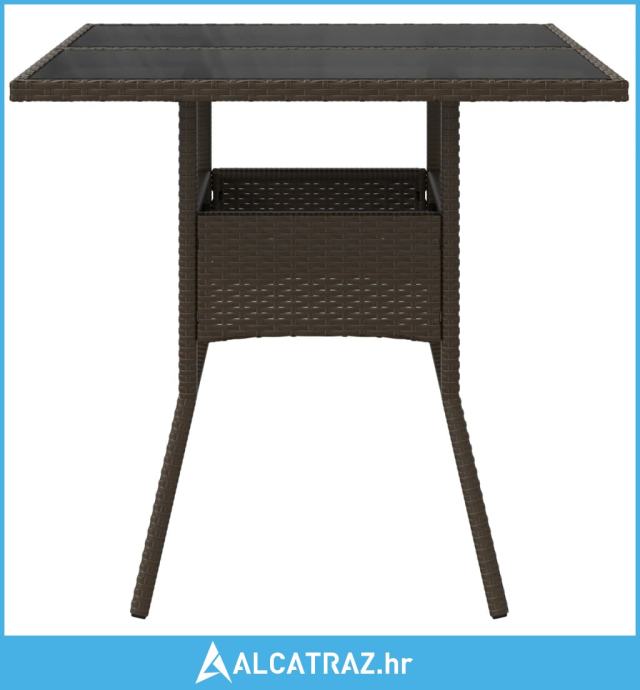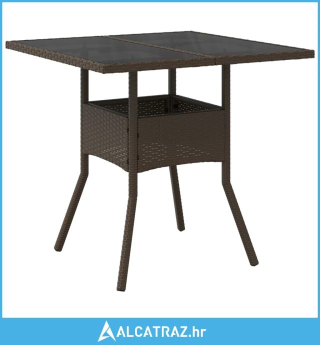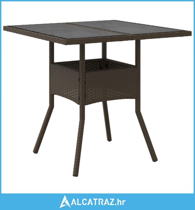 Vrtni stol sa staklenom pločom smeđi 80x80x75 cm od poliratana - NOVO