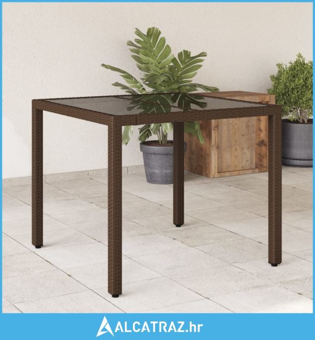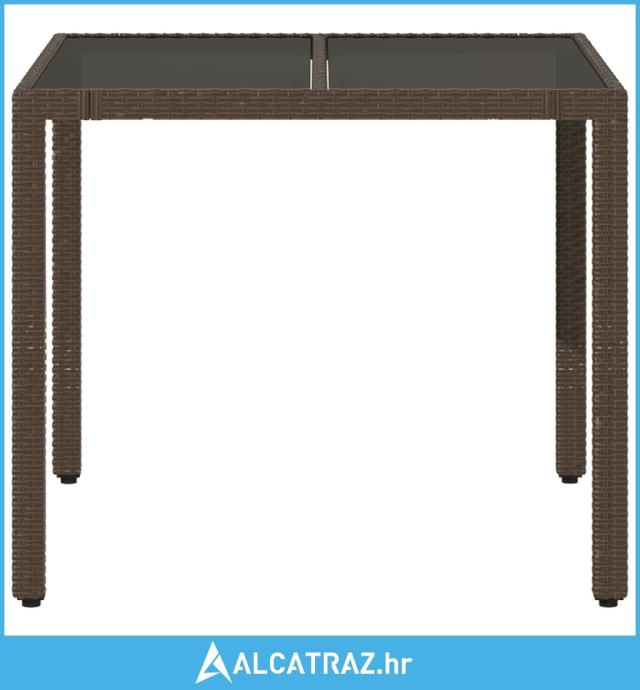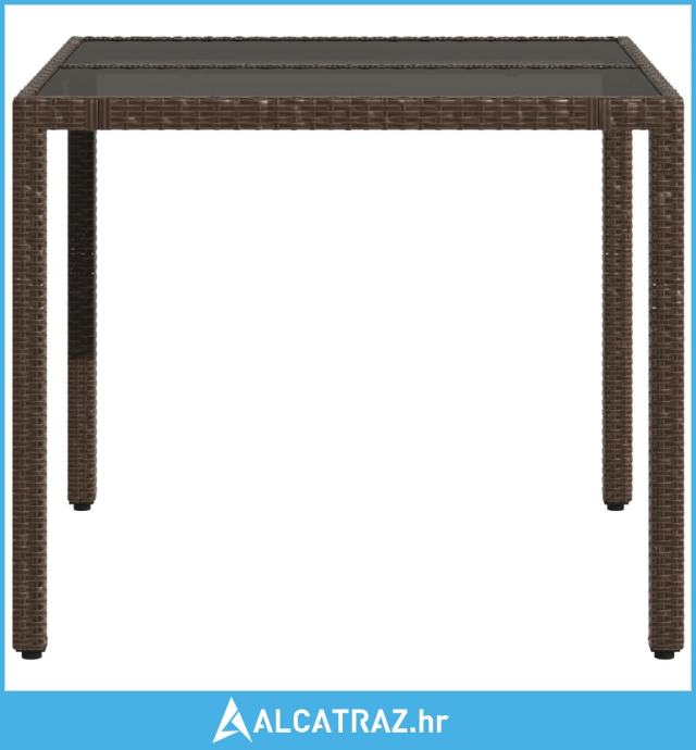 Vrtni stol sa staklenom pločom smeđi 90x90x75 cm od poliratana - NOVO