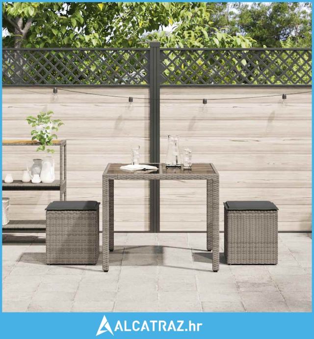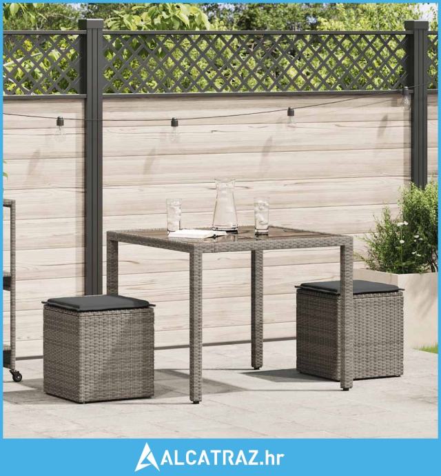 Vrtni tabure s jastucima 2 kom sivi 40x40x43 cm poliratan - NOVO