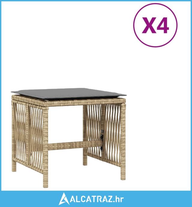 Vrtni taburei s jastucima 4 kom 41x41x36 cm od poliratana - NOVO