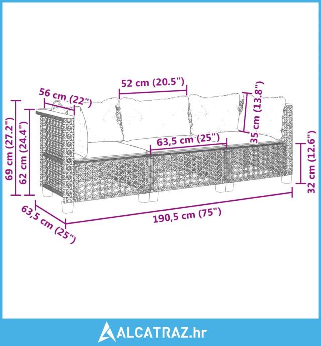 - Ukupne dimenzije sofe: 190,5 x 63,5 x 62 cm (Š x D x V)
