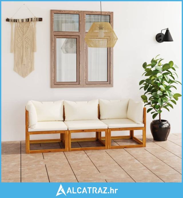 Vrtni trosjed s krem jastucima od masivnog bagremovog drva - NOVO