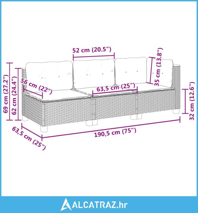 - Ukupne dimenzije sofe: 190,5 x 63,5 x 62 cm (Š x D x V)