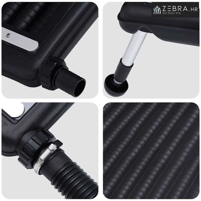 Ovaj solarni grijaći sustav dizajniran je s visokokvalitetnim materijalima koji će spriječiti često izlaganje suncu i vanjskim elementima. Zakrivljeni paneli za grijanje bazena i podesive noge osiguravaju maksimalan prostor za prikupljanje sunčeve energije, što rezultira učinkovitijim grijanjem.