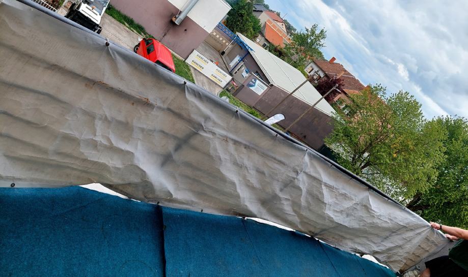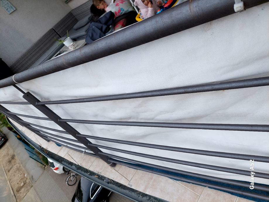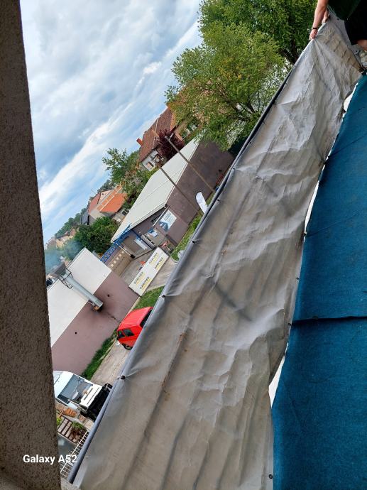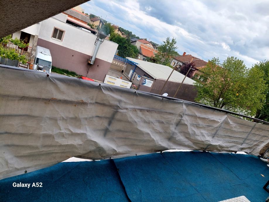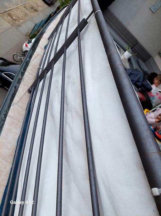 Rađena po narudžbi, kvalitetan materijal. Kupili novu pa ovu prodajemo.sa unutarnje strane se vidi da je koristeno zbog vjetra ali sa vanjske strane se ne vidi ništa jer je čvrst materijal.