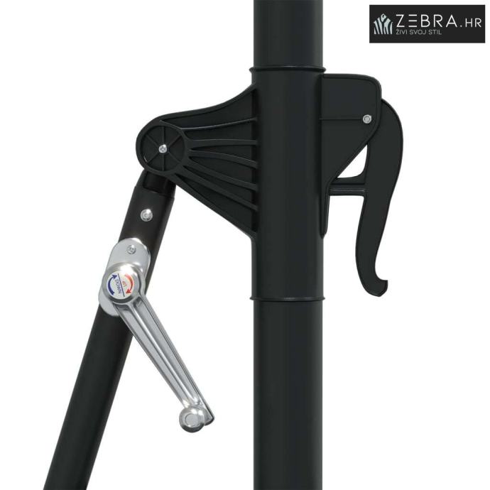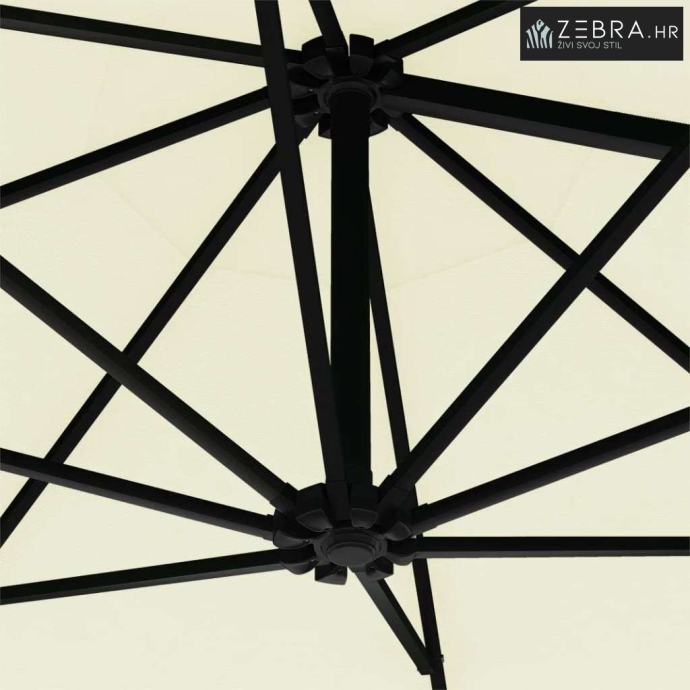 Napravljen od poliestera, koji štiti od UV zračenja i ne blijedi, pokrov suncobrana pruža vam najbolju zaštitu od sunca i lako se čisti. Ekskluzivni dizajn ovog suncobrana omogućuje vam da ga nagnete kako biste blokirali sunce dok se spušta prema obzoru. Snažni metalni stup, s 8 izdržljivih rebara, čini suncobran vrlo stabilnim i dugotrajnim. Ovaj vrtni suncobran može se lako otvoriti i zatvoriti zahvaljujući mehanizmu s ručicom. Ovaj artikl lako se sastavlja. Isporuka također uključuje pribor za montažu.