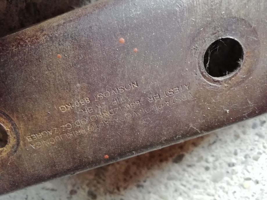ATEST BR. 880; izdano od "CZ - ZAGREB; Tip: LK BR", nosivost 880 kg.