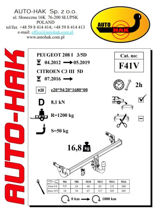 Nova kuka poljskog proizvođača AutoHAK za Citroen C3 III (2016-2024) ili Peugeot 208 (2012-2019). U paketu je i univerzalni set za signalizaciju. Nikad montirana. Kupljeno 04.2024. Kuka je vertikalna, ne reže se branik, ne vidi se na vozilu da postoji dok nije montirana. Imam račun i certifikat (homologaciju), znači sve potrebno za registraciju. Oznaka proizvođača: F41V. Broj homologacije: e20*94/20*1680*00. Dostava uračunata u cijenu.