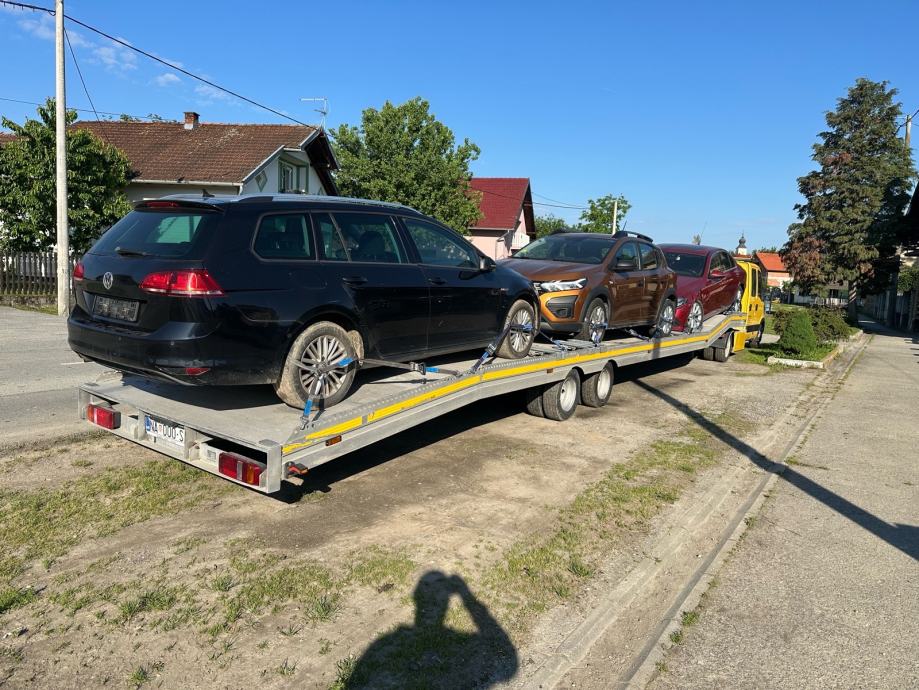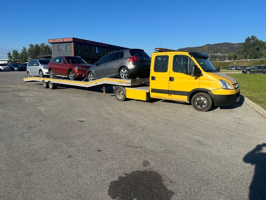 Prodajem komplet Iveco daily mini tegljač na B kategoriju i poluprikolicu veldhuizen 12.70 sa 2.20 idealnu za prijevoz 3 auta ,2 kombija ili 2 manja auta i manji kombi. Nosivost prikolice je 5.5 tona te je potrebna kategorija za voziti CE ili C1E