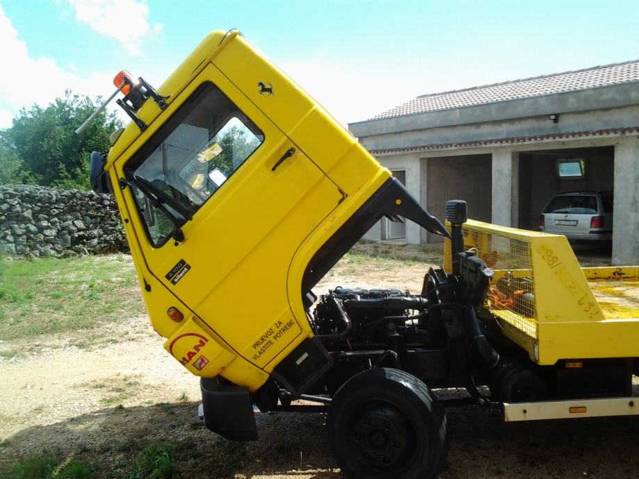 Kamionu je istekao tehnički u 3. mjesecu, od tada je korišten malo za prijevoz mini bagera na relaciji od 10km. Motor je u izvanrednom stanju, novo ulje i filteri. Dva nova akumulatora. potrebno promijeniti gume, dva svijetla su malo puknuta. bilo bi i poželjno da se oboja, karoserija je u dobrom stanju.Vitlo ne radi, rampe ima ali su malo skrivljene od ukrcaja mini bagera. Zglob od ručke mjenjača je istrošen (novi dođe oko 400kn) pa malo teže upada u rikvec. Cijena 10000kn ili s tehničkim 23000kn hitno! Kontakt samo na 095 535 8660