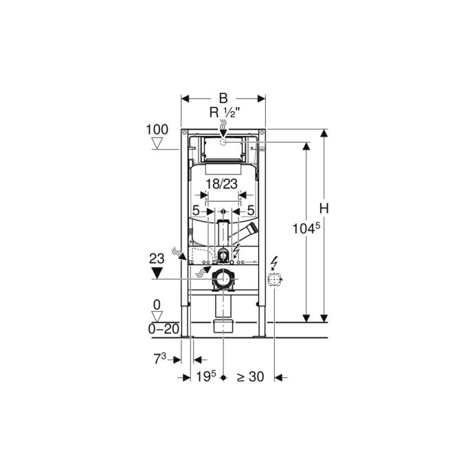 Geberit Duofix element za konzolnu WC školjku, 112 cm, s Sigma ugradbenim vodokotlićem 12 cm, za vanjsko odzračivanje iz WC školjke Tlak protoka: 0.1-10 bar Maksimalna temperatura vode: 25 °C Tvorničke postavke količine vode za ispiranje: 6 i 3 l Područje podešavanja velike količine vode za ispiranje: 4.5 / 6 / 7.5 l Područje podešavanja male količine vode za ispiranje: 3-4 l - Samostojeći okvir, završna obrada pečenim lakom - Okviri s rupama 9mm za učvršćenje u konstrukciju od drvenih okvira - Okvir pripremljen za potporne elemente kod WC školjki s malom površinom podloge - Potporna noga, pocinčana - Potporne noge, podesive 0–20 cm - Potporna noga s protukliznim svojstvima - Podne ploče, okretne - Podna ploča, dubina prikladna za ugradnju u U-profile UW 50 i UW 75 i sistemske šine Geberit Duofix - Priključno koljeno može se montirati bez alata u različitim položajima dubine, raspon namještanja 45 mm - Učvršćenje za priključno koljeno, zvučno izolirano - Ugradbeni vodokotlić s čeonim aktiviranjem - Ugradbeni vodokotlić, potpuno izoliran protiv kondenzacije - Kod tvorničkih postavki moguće je trenutačno naknadno ispiranje - Vanjsko odzračivanje može se priključiti preko isplavnog koljena putem priključne spojnice o 50 mm - Radovi montaže i popravci na ugradbenom vodokotliću bez alata - Priključak vode straga ili gore u sredini - Građevinska zaštita štiti servisni otvor od vlage i prljavštine - Građevinska zaštita za servisni otvor, može se skratiti - Opremljen praznom cijevi za dovod vode radi priključivanja Geberit AquaClean tuš WC-a - S mogućnošću učvršćenja za priključak struje