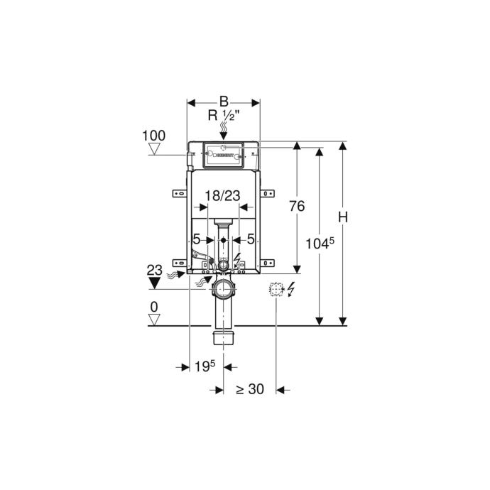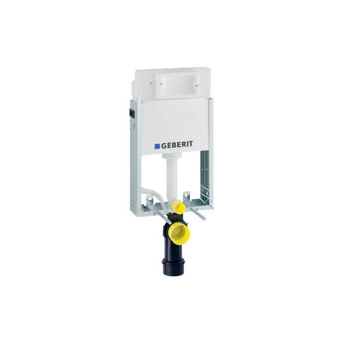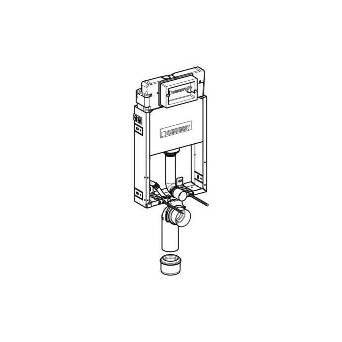 Geberit KombifixBasic element za konzolnu WC školjku, 108 cm, s Delta ugradbenim vodokotlićem 12 cm Tvorničke postavke količine vode za ispiranje: 6 i 3 l Područje podešavanja velike količine vode za ispiranje: 4.5 / 6 / 7.5 l Područje podešavanja male količine vode za ispiranje: 3-4 l Izračunati protok: 0.12 l/s Najmanji tlak protoka za izračunati protok: 0.5 bar - Montažni okvir, pocinčan - Montažni okvir s četiri pričvrsna nosača - Priključno koljeno može se montirati bez alata - Učvršćenje za priključno koljeno, može se montirati sprijeda, bez alata - Ugradbeni vodokotlić s čeonim aktiviranjem - Ugradbeni vodokotlić, potpuno izoliran protiv kondenzacije - Kod tvorničkih postavki moguće je trenutačno naknadno ispiranje - Priključak vode straga ili gore u sredini - Priključno crijevo, može se spojiti na kutni ventil bez alata - Opremljen praznom cijevi za dovod vode radi priključivanja Geberit AquaClean tuš WC-a - S mogućnošću učvršćenja za priključak struje