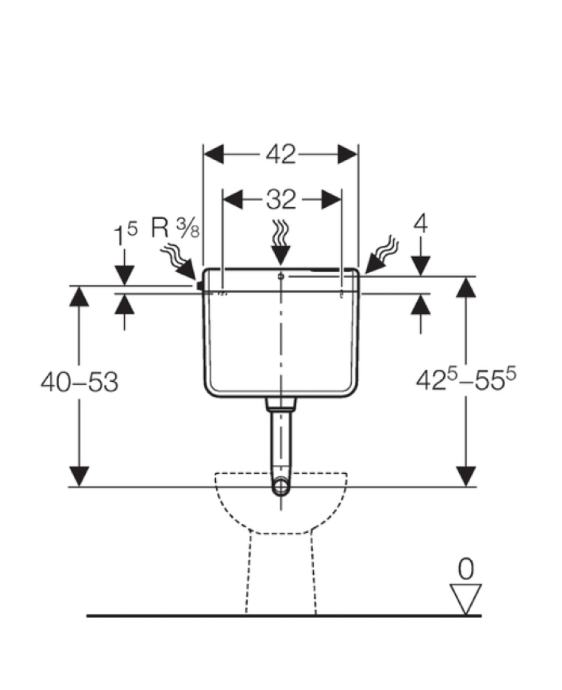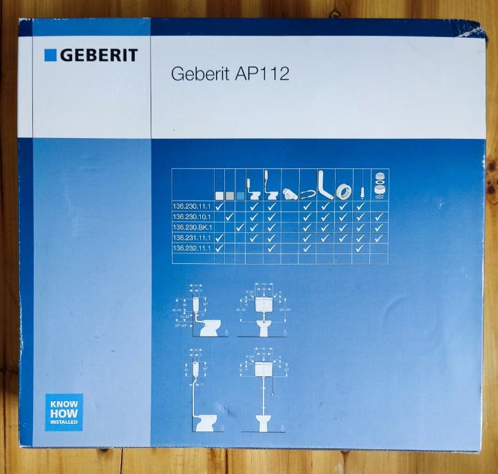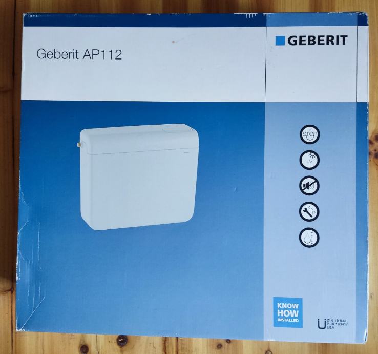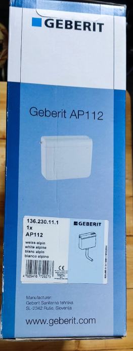 Geberit nazidni vodokotlić AP112, start/stop ispiranje, priključak vode bočno ili straga u sredini + kutni ventil za priključak 1/2" - 3/8"