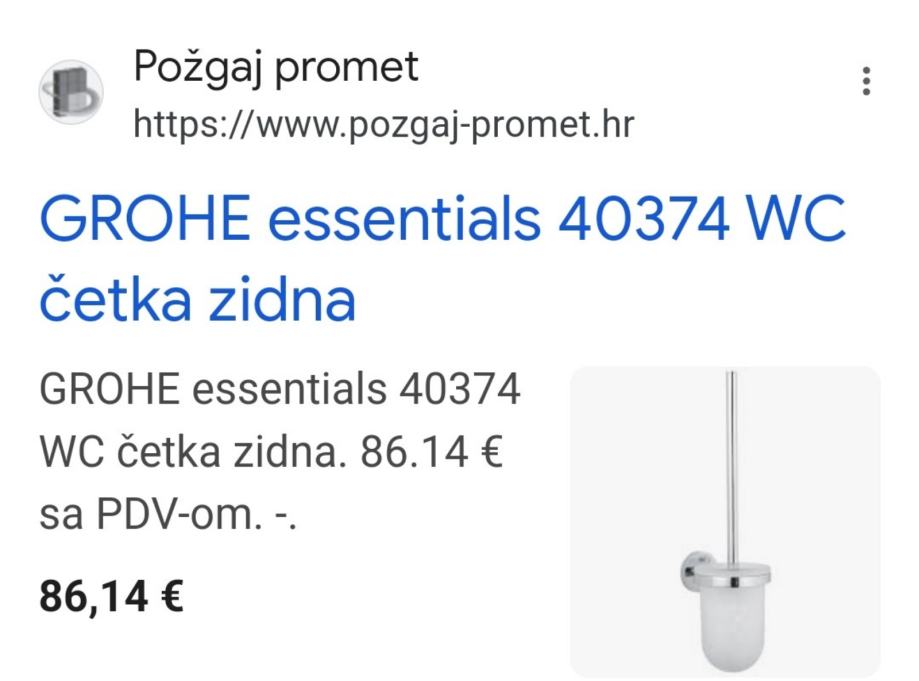 Komplet s četkom za WC školjku GROHE Essentials: higijenski komplet za zidnu ugradnju