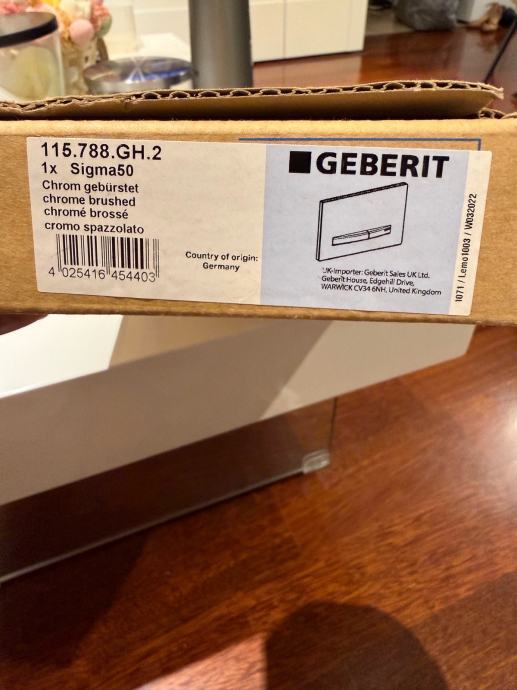 Prodajem tipku Geberit Sigma 50, art. 115.788.GH.2, za ugradbene vodokotliće Geberit Duofix Sigma. Brušeni Krom. Kratko korištena, kao nova. Cijena 160 eura.