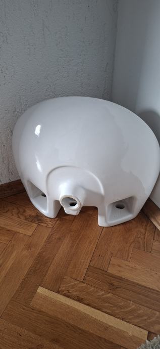 Prodajem rabljeni keramički umivaonik bijele boje, polukružnog oblika. Radi se o modelu koji se montira na zid, s otvorom za sifon. Umivaonik je kompaktnijih dimenzija, prikladan za manje kupaonice ili WC prostorije.