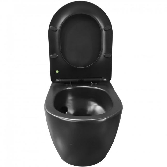 Zidna WC školjka – Elegancija u mat crnoj bojiModeran dizajn: mat crna površina za luksuzan i moderan izgled u vašoj kupaonici.Prvoklasna završna obrada: Staklena glazura klase A, pečena na 1280 °C – dugotrajna, otporna i higijenska.Ušteda prostora i praktičnost: Kompaktne dimenzije (530 x 360 x 350 mm) za elegantnu zidnu ugradnju.Udobnost i tišina: Poklopac s mekim zatvaranjem za tiho zatvaranje - idealno za opuštajuće trenutke u kupaonici. Vrhunsko sjedenje: Priložena ultra-fina UF navlaka za sjedalo nudi elegantan dizajn i visoku stabilnost. Kladite se na bezvremenski estetski izgled i najvišu kvalitetu - za kupaonicu koja impresionira! Treba li što prilagoditi ili dodati?