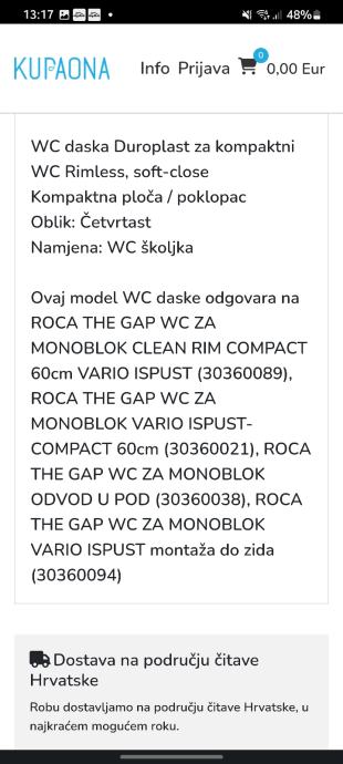 WC daska Duroplast za kompaktni WC Rimless, soft-close