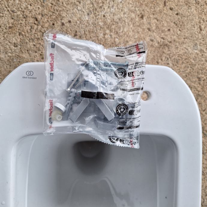Nova wc skoljka i pripadajuca daska sa setom za montazu. Samostojeca s odvodom u zid.