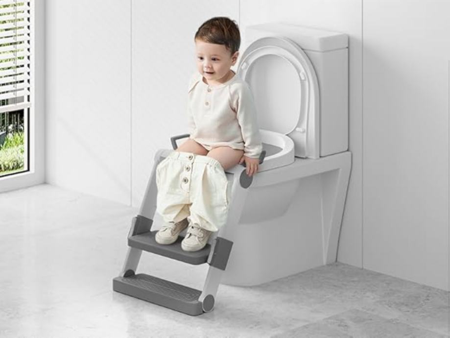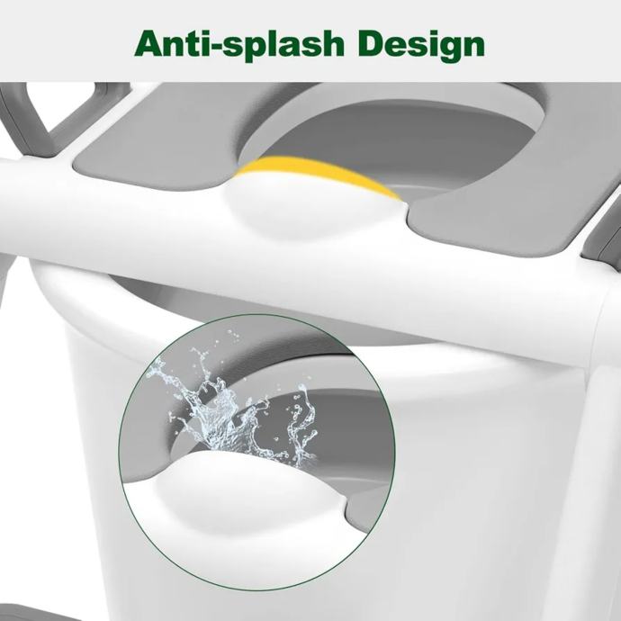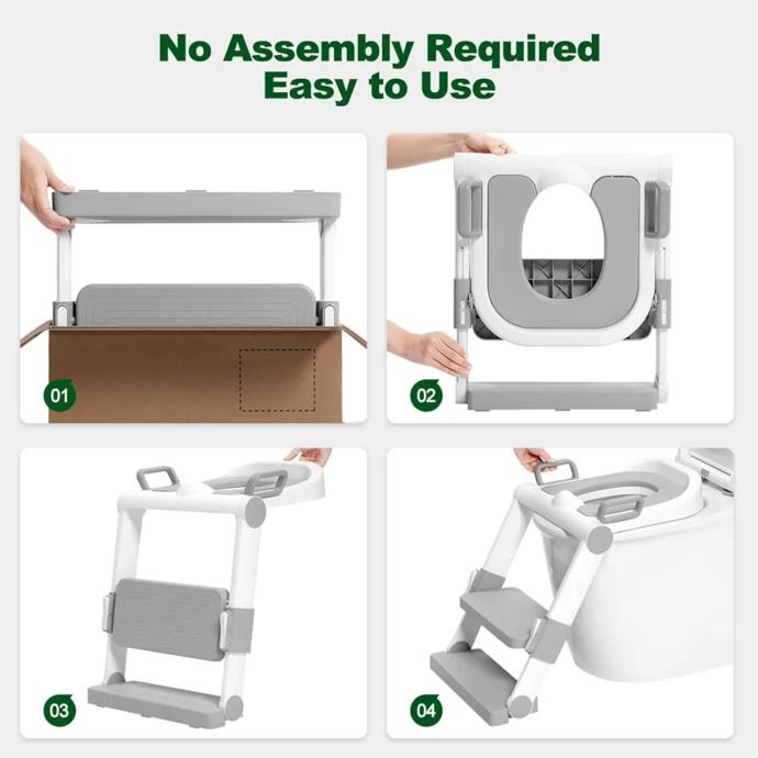 WC sjedalo za odvikavanje od pelena, prijenosne i sklopive stepenice za malu djecu, nije potrebna ugradnja, papučica i sjedalo podesivi po visini u 3 položaja, s jastukom, bijelo-siva
