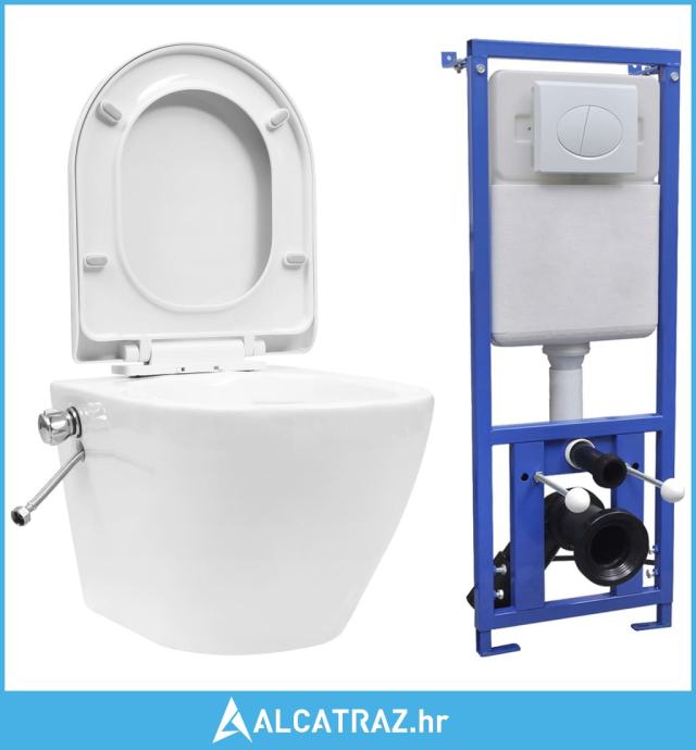 Zidna WC školjka s ugradbenim vodokotlićem keramička bijela - NOVO