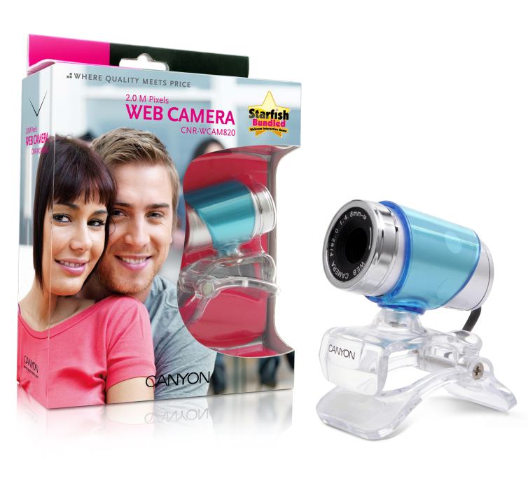 CNR-WCAM820 je 2.0 megapiksela kamera sa CMOS senzorom koja nudi cool dizajn i visoku kvalitetu video poziva. Posjeduje petoslojno staklo za leće sa kutom gledanja od 70 stupnj.eva, softverom za praćenje lica, funkcije digitalnog zumiranja, automatsko podešavanje osvjetljenosti, kompenzacije boja i balansa bijele boje. Ova internet kamera posjeduje integriran mikrofon kao i nekoliko efekata za sliku i foto okvire koji će dodati nijansu zabave tijekom chatting-a ili igrica. Praktičan klip omogućuje postavljanje na LCD monitor ili desktop ili prijenosno računalo, ali se može postaviti i stabilno na ravnu površinu. Ova web kamera je komatibilna sa raspoloživim verzijama Windowsa.