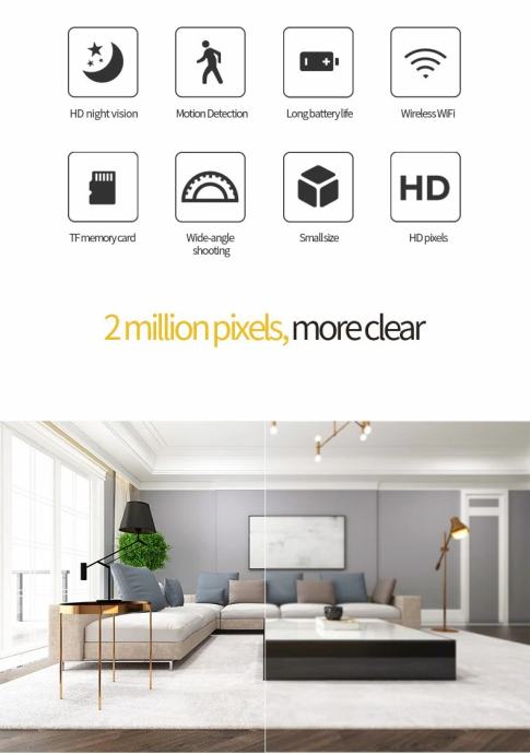 Kamera ima promjer 3,5 cm, pa se može postaviti u svaki kut ili na bilo koju željeznu površinu. Može biti savršena kao nadzorna kamera u uredu, kući i automobilu itd.