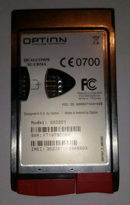 HSDPA/UMTS/EDGE Option Qualcomm 3G CDMA kartica za VIP mobilni internet, potpuno ispravna, malo korištena. Model: GX0201