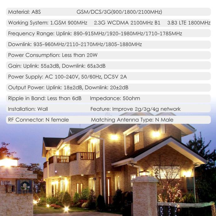 Široka frekvencija: radi za frekvenciju signala 900MHz+1800MHz+2100Mhz.