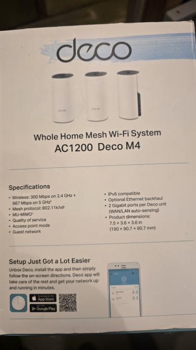 Deco M4 pruža brze i stabilne veze s brzinama do 1167 Mbps† i radi s glavnim davateljem internetskih usluga (ISP) i modemom.