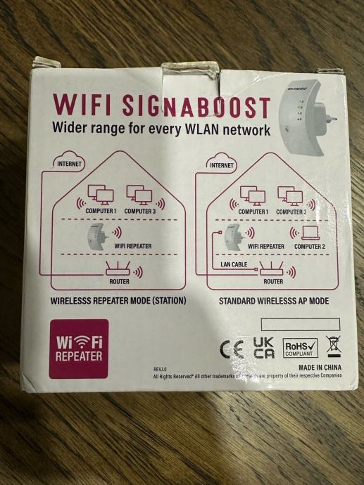Prodajem WiFi repeater / pojačivač signala “WIFI Signaboost” — idealan za proširenje dometa vaše bežične mreže u stanu, kući ili vikendici. Uređaj je vrlo jednostavan za instalaciju i pogodan za sve koji imaju problem slabog WiFi-signala u nekim prostorijama.