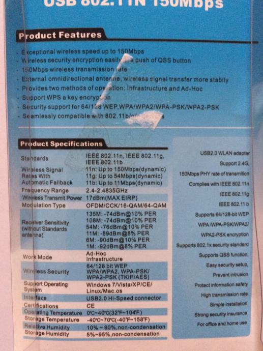 Namjenjen za PC ili laptope koji nemaju wifi.
