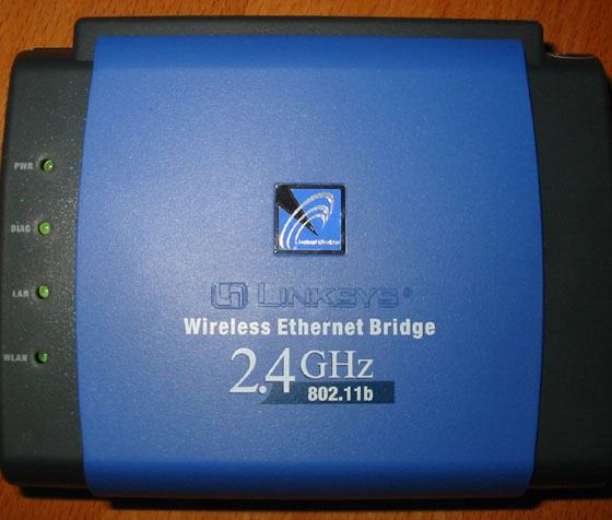 The Linksys WET11 Wireless Ethernet Bridge is a device that can be used to share a broadband connection via 802.11b, or simply to link two Ethernet networks together. The growth of the use of 802.11b network technology closely mirrors the march of broadband and many people are wanting to share their broadband connections with other computers in a house, without the problems of hiding network cables under floors or linking different floors together. It should be noted that to make use of the Linksys WET11 you will require an ADSL modem and combined router, i.e. a device to terminate the ADSL line and provide an Ethernet connection suitable for the WET11.