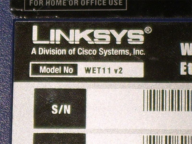 WET11 V2 Linksys Cisco WET11 Wireless -B Ethernet Bridge.